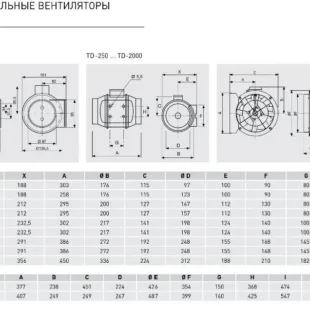 Вентилятори TD-MIXVENT виготовляються з високоякісного пластику (моделі від 160 до 800) і з листової сталі з епоксидним покриттям (моделі від 1000 до 6000). В залежності від моделі, вентилятори комплектуються пластиковими або алюмінієвими крильчатками (див. “Моделі”).
