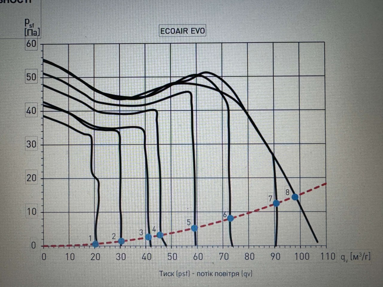 ECOAIR EVO розроблено як зручний для встановлення продукт із вбудованим інтуїтивно зрозумілим керуванням і дисплеєм. Швидкість потоку можна регулювати (постійний потік повітря) в межах 18, 29, 40, 47, 58 м3/год, а швидкість наддуву від 72 до 108 м3/год.