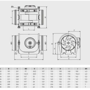 Оптимізована конструкція крильчатки, направляючого апарату і обтічника на виході повітря дозволяють збільшити продуктивність і знизити рівень шуму вентилятора. Вентилятори виготовляються з міцного високоякісного пластику.